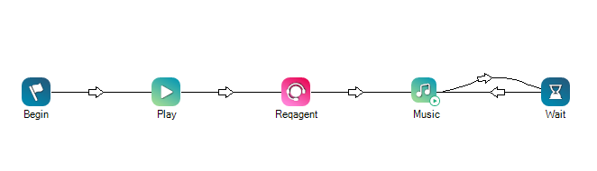 Wenn Sie Wait zum Erstellen einer Schleife verwenden, wie bei der Music-Aktion, müssen Konnektoren vorhanden sein, die in beide Richtungen zwischen Wait und der anderen Aktion verlaufen, wie in dieser Beispielabbildung gezeigt.