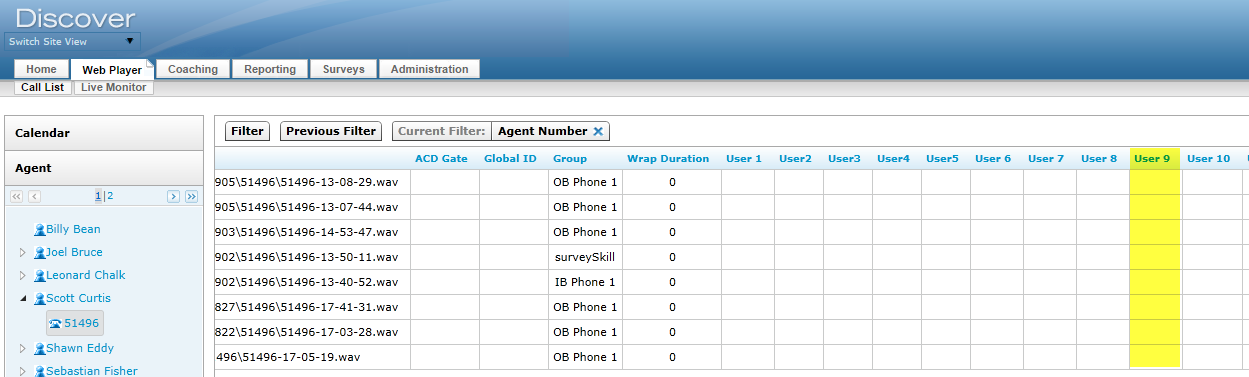 Obwohl User9 technisch gesehen keine Variable ist, erhält es seinen Wert vom Benutzerkonto des Agenten, genauer gesagt vom Wert in den benutzerdefinierten Eigenschaften 1, und füllt das Feld Benutzer 9 in Uptivity.