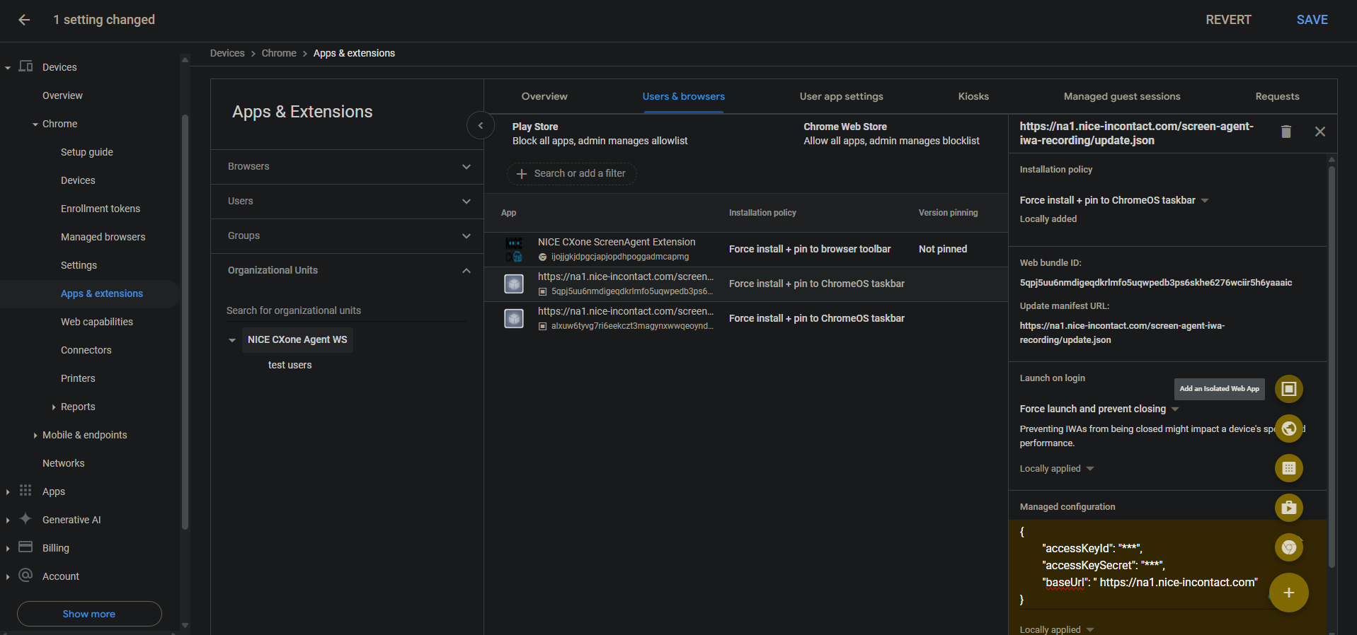 Richten Sie ScreenAgent in der Chrome Admin-Konsole in der angegebenen Reihenfolge ein.