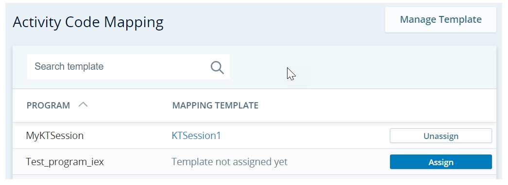 - Accédez à Gestionnaire de programmes > Mappage des codes d’activité et cliquez sur Gérer le modèle.