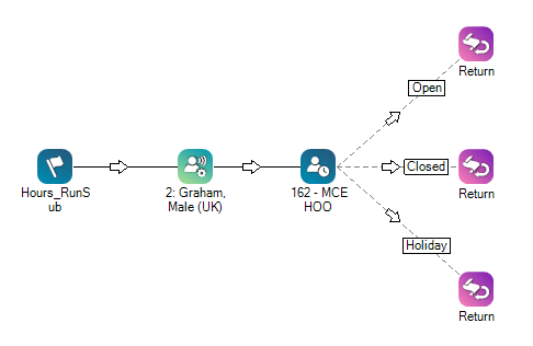 L'exemple ci-dessous est un indice qui utilise trois actions Return en valeurs vers un script principal.