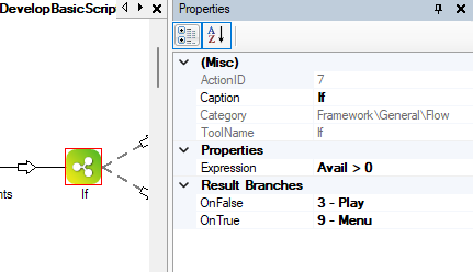 • L'action If crée une prise de décision dans votre script. Vous pouvez en savoir plus sur ce type d’instruction dans la section Guide technique de l'aide en ligne de Studio.