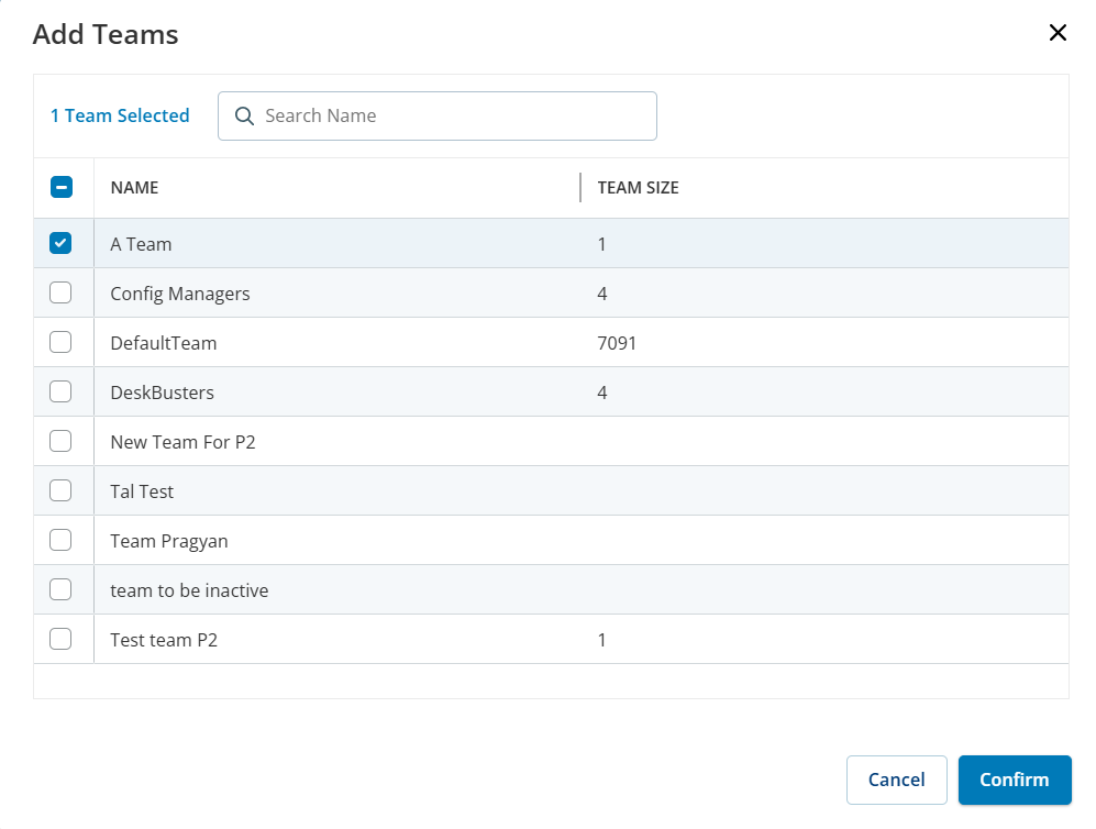 Dans la boîte de dialogue Ajouter des équipes, cochez la case en regard du nom de l’équipe que vous souhaitez ajouter. Vous pouvez sélectionner plusieurs équipes.