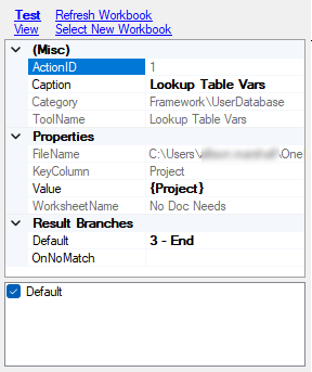 2. LookupTableVarsをダブルクリックしてウィザードを開きます。 スプレッドシートをアップロード済みで、新しいスプレッドシートを選択したい場合は、アクションを右クリックし、プロパティウィンドウから新しいワークブックを選択をクリックします。