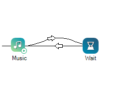 Musicアクションのように、 Waitを使用してループを作成する場合、この画像例のように、Waitと他のアクションの間でコネクタを双方向に配置する必要があります。