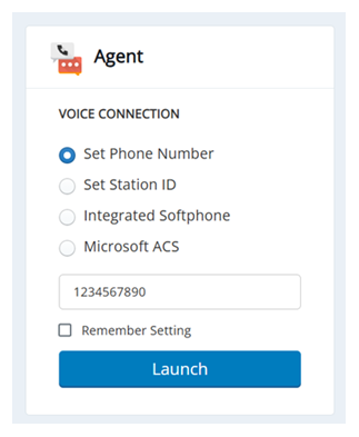 4. 選択したオプションをAgentに記憶させるには、Remember Settingを選択します。 また、入力した電話番号やステーションIDも記憶します。