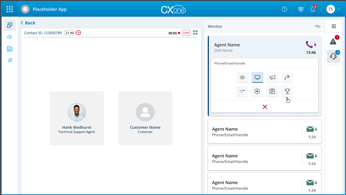 スーパーバイザーは、エージェントとその音声およびDigital Experienceデジタルコンタクトをモニターして、エージェントがインタラクションに対応している間にガイドするなど、多くのアクションを実行することが可能です。