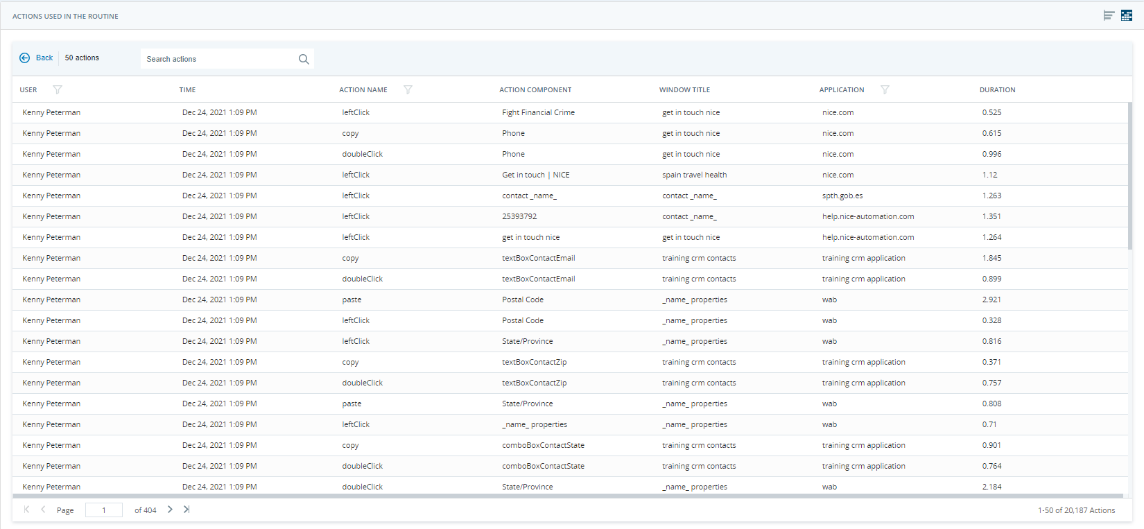 루틴은 발생한 작업 순서를 요약합니다.을 선택하여 해당 프로세스 또는 루틴에 대한 추가적인 세부 정보를 볼 수 있습니다. 이 페이지를 통해 사용자 업무의 효율성 여부를 판단하여 사용자 성과를 분석할 수 있습니다.