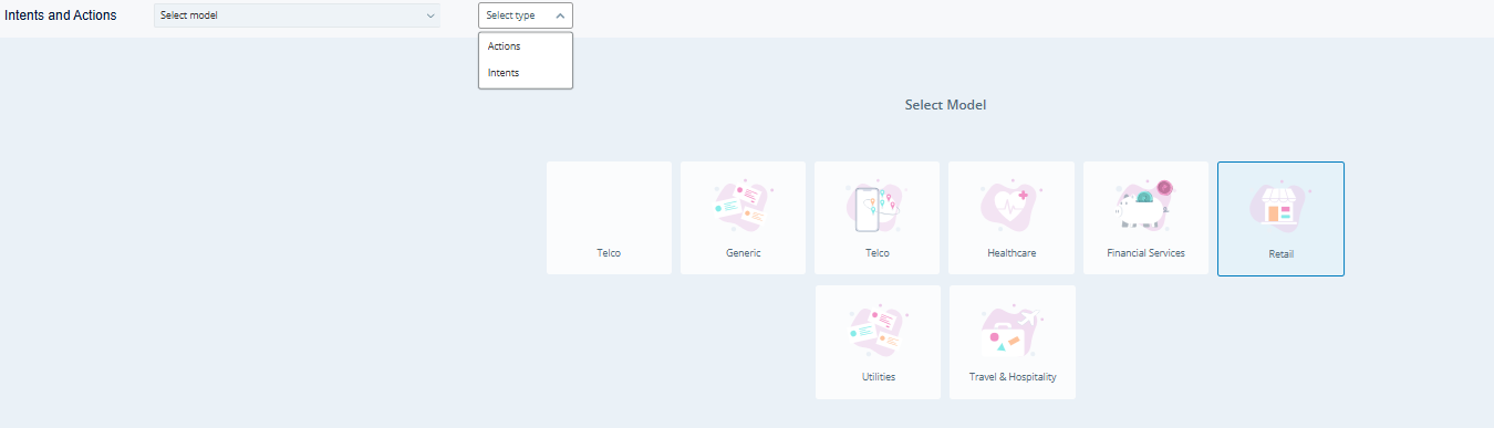 Gebruik de vervolgkeuzelijst Type selecteren om intenties of acties voor het door u gekozen model te bekijken.