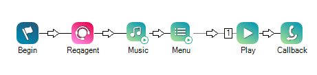 Nesse script, um agente é solicitado e a música é reproduzida por 30 segundos enquanto o contato aguarda na fila. Ao final de 30 segundos, um menu pergunta ao contato se eles gostariam de um retorno de chamada quando um agente estiver disponível. Nesse caso, pressione 1. Caso contrário, continue esperando. A ação Play é usada para dizer obrigado se o usuário deseja um retorno de chamada (em vez do sistema apenas desligar).
