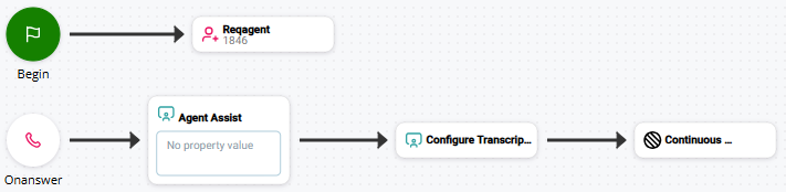 • Em scripts de voz, coloque esta ação após a ONANSWERação e antes da CONTINOUS TRANSCRIPTION ação.
