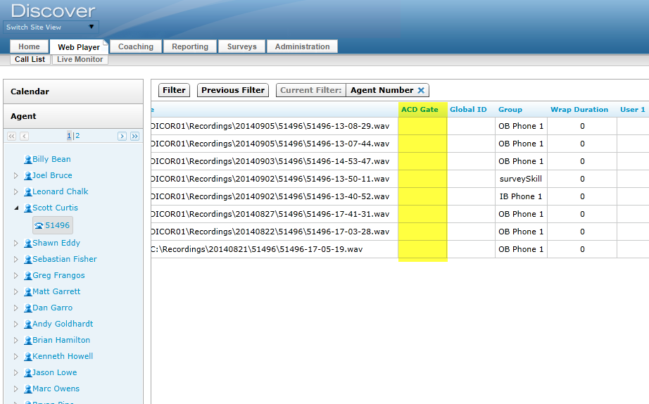 O valor dessa variável é usado como o filtro ACD Gate em Atividade.