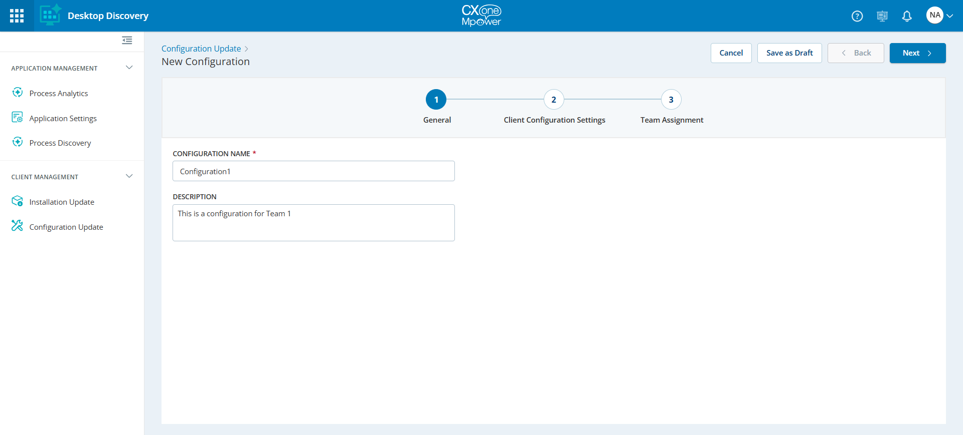 Vá até Workforce Engagement > Desktop Discovery > Gerenciamento de clientes > Atualização de configuração.