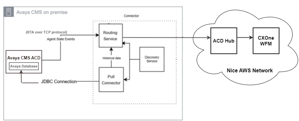 實時:Avaya CMS 連接器將偵聽 Avaya CMS 系統中配置的 TCP 主機和埠,以獲取即時代理狀態事件。